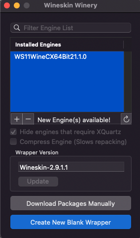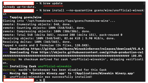 - 터미널에 입력 : brew install --no-quarantine gcenx/wine/unofficial-wineskin